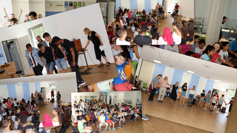 Ausgelassen und fröhlich saßen die Schülerinnen und Schüler in der Mensa der Mönchbergschule und lauschten den Gesängen ihrer MitschülerInnen. An diversen Tänzen konnte jeder teilnehmen ohne Altersbegrenzung. Über syrische und griechische Tänze bis hin zum Cup-Song wurde alles geboten, um sich genüsslich auf die Ferien einzustimmen. Jonas Hermes und Felix Schneider von "WiMu" waren extra angereist auf der Suche nach musikalischen Talenten und sponserten die Technik für die Aufführungen. Herzlichen Dank an Frau Heinrich, die mit viel Herzblut die jungen Akteure motiviert hatte, so dass zum Schluss hin ein regelrechter "run" auf die Bühne stattfand. Allen Mönchberglern schöne Ferien!