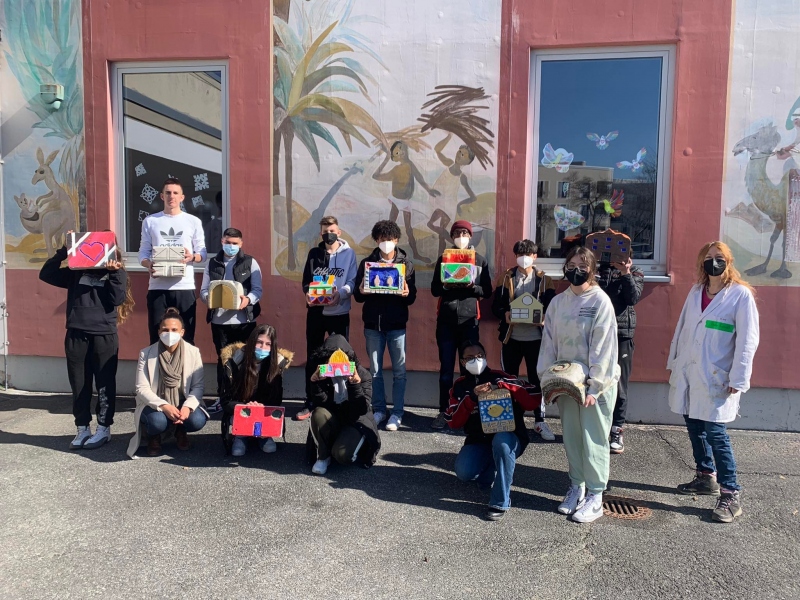 Im ersten Schulhalbjahr 2021/22 kam immer freitags für mehrere Stunden die Künstlerin Frau Birgit Schmidt zu einem Kunstprojekt in die Deutschklasse 8/9DG. Die Schülerinnen und Schüler bearbeiteten Yton - ein Porenbeton, der leicht und einfach zu handhaben ist. Die Jugendlichen hatten sichtlich Freude am künstlerischen Schaffen und es entstanden im Laufe der Zeit viele tolle Kunstwerke.