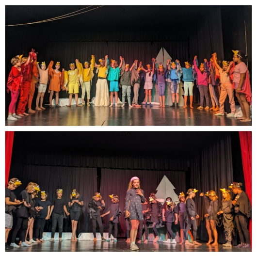 Es war in der Tat ein farbenfroher Theaterabend mit einer gelungenen Vorstellung der Dritt- und Viertklässler, die nach einer langen, oftmals unterbrochenen Probenzeit das Stück "Als die Raben noch bunt waren" nach dem gleichnamigen Bilderbuch von Edith Schreiber-Wicke von 1989 auf die Bühne brachten. Es hat von seiner Aktualität nichts verloren! Vielen Dank für die großzügigen Spenden, mit denen die Theaterkasse unterstützt wird.