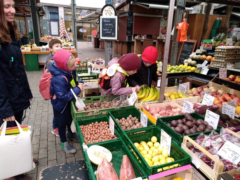 Die Klassen 1/2 der flexiblen Grundschule besuchten am 09.10.2018 den Markt in der Stadt und kauften dort Obst und Gemüse für ein gesundes Frühstück ein. Die Kinder informierten sich über die Herkunft der Früchte und durften Erfahrungen im Umgang mit Geld sammeln. Gemeinsam mit den Partnerklassen werden die Einkäufe in der Woche der Gesundheit und Nachhaltigkeit zubereitet und verköstigt.