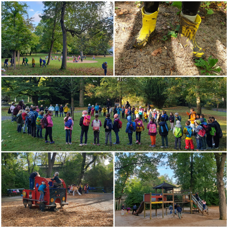 Am Freitag, den 27.09.2024 sind die jahrgangsgemischten Klassen der Drachen, Luchse und Bären in den Ringpark gewandert und haben dort Kastanien und Eicheln gesammelt, Eichhörnchen beobachtet und auf dem Feuerwehrspielplatz gebrotzeitet und gespielt.