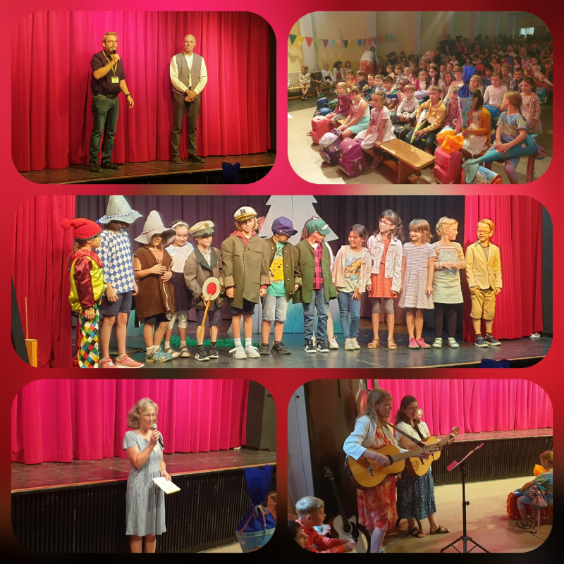 Die Zweities spielten für die Ersties ein kleines Theaterstück. Herr Schraut und Herr Kerber begrüßten Eltern und Schüler. Viele Lieder und kleine Beiträge rundeten den besonderen Tag ab.