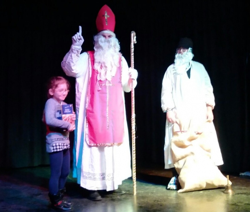 Am 6. Dezember 2019 besuchte der Nikolaus die Grundschülerinnen und Grundschüler im Theatersaal. Er hatte seinen Helfer dabei, der aus dem großen Sack Mandarinen und Lebkuchen hervorholte.