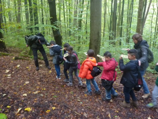 Ende Oktober hat die Klasse Ü3/4 das Thema Wald beschäftigt. erkundet und erlebt. Mit einem Förster waren wir im Wald im Steinbachtal unterwegs, haben den Wald erkundet und vielfältigerlebt. Im Wald, aber auch im Unterricht haben wir vieles über die Bäume und andere Pflanzen, sowie über die Waldtiere gelernt. An diesem Waldtag haben wir aber vor allem auch viele Walderlebnisspiele gespielt, Sinnesübungen gemacht, Waldtiere "entdeckt" und besondere Waldbilder zur Erinnerung gestaltet.. Wir haben viel Spaß gehabt!