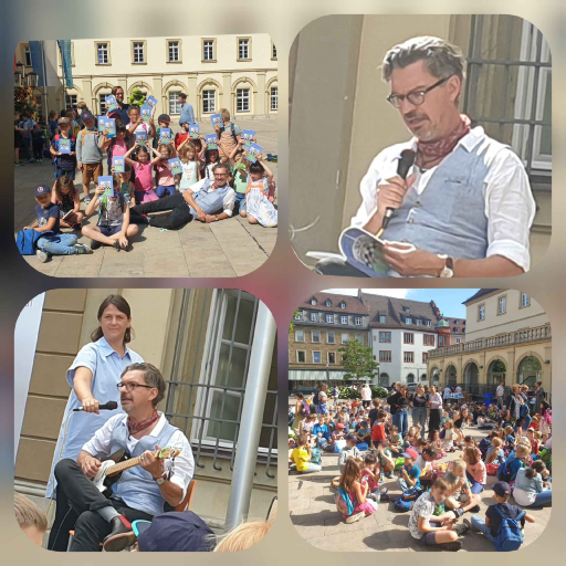 Die Drachenklasse hat mit vielen anderen Grundschulklassen (2.Klassen) am Projekt Würzburg schreibt ein Buch teilgenommen. Im Rathausinnenhof fand die Abschlussveranstaltung mit Herrn Seltmann statt. Es war toll! Vielen Dank Herr Seltmann!