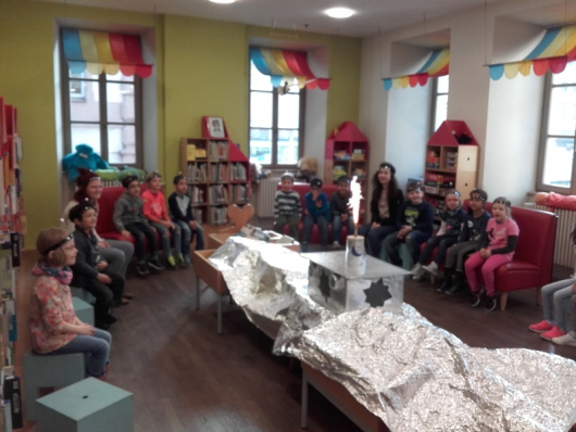 07.04.2017 Markus Hirt Die Erstklässler waren am letzten Donnerstag im März in der Stadtbücherei und haben dort eine intergalaktische Reise zum Bücherplaneten unternommen. Es hat viel Spaß gemacht. zurück zur vorigen Seite