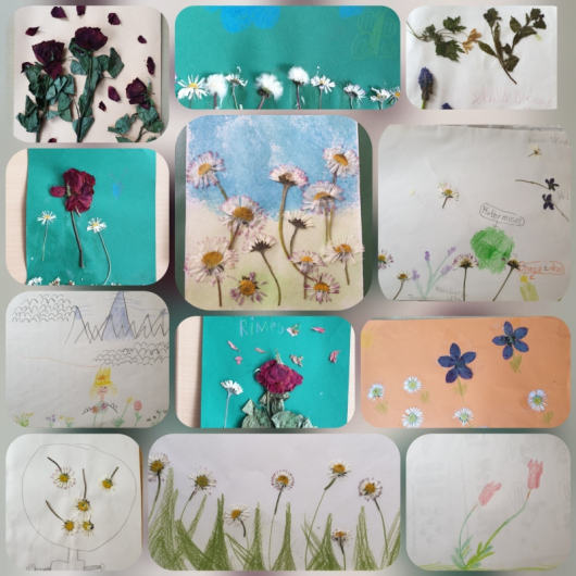 06.05.2021 Markus Hirt Die Kinder der Bären-, Eulen- und Drachenklasse hatten letzte Woche die Aufgabe im Wochenplan Blütenbilder zu gestalten. Dazu haben die Kinder Blumen gepresst, Blüten aufgeklebt, gemalt und gestaltet. Der Frühling kommt! zurück zur vorigen Seite