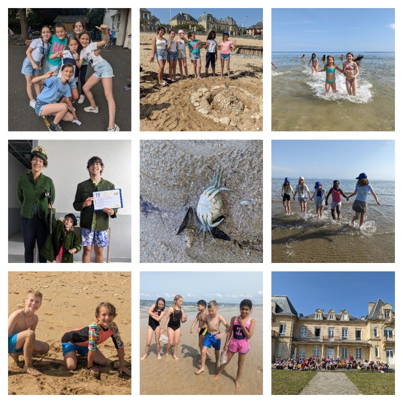 Nun sind die Tiger und Adler schon seit über einer Woche von ihrer aufregenden Fahrt nach Caen zurück und dennoch sind die Erlebnisse von dort und die Freundschaften, die geknüpft worden sind, noch oft Gesprächsthema. "Können wir nicht noch bleiben?" lautete eine oft gestellte Frage nach einer wunderschönen, erlebnisreichen, sonnigen Woche mit vielen Begegnungen mit den französischen Partnern: bei der Begrüßungsfeier in der Schule, der Stadtrallye, einem gemeinsamen Sandburgenbau- und Spieletag am Strand, dem Spiel- und Spaßnachmittag in der Schule sowie dem Tag in den französischen Gastfamilien konnten die Kontakte aus Würzburg noch vertieft werden. Nachdem unsere Jugendherberge direkt am Meer lag, ging es jeden Tag zum Muschelnsammeln, Baden, Volleyball oder Fußball spielen oder einfach nur Buddeln. Die Zimmerpolizei, die täglich unterwegs war, hat nicht nur die Ordnung und den Zusammenhalt in den Zimmern, sondern auch die Nacht- und Morgenruhe bewertet und dabei schnitten alle erstaunlich gut ab. Auch das 3 Minuten Powerduschen wird der ein oder die andere bestimmt vermissen. :-))