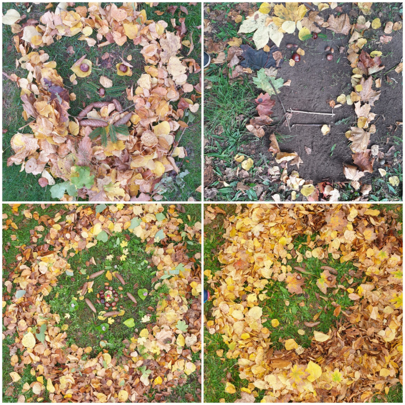 21.10.2025 Markus Hirt Die Bären und Drachen haben mit mitgebrachten und frisch gesammelten Herbstutensilien Herbstbilder im Pausenhof und auf dem Spielplatz gelegt zurück zur vorigen Seite