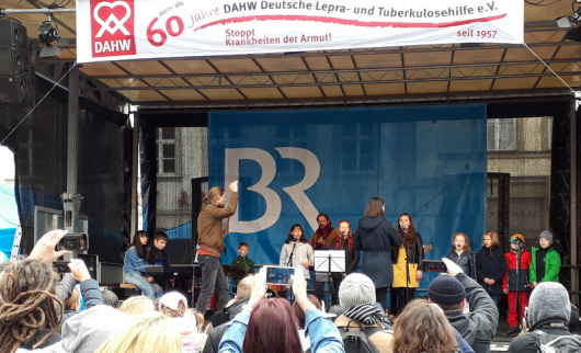 Am Sonntag war ein großes Kinderfest auf dem Marktplatz in Würzburg. Auch Schülerinnen und Schüler der Mönchbergschule waren gekommen. Auf der Bühne des Bayerischen Rundfunks sangen sie ein Lied, das sie bei WiMu (Willkommen mit Musik) gelernt hatten. Herr Luc-Maurice Gonel und Frau Isabell Papst haben es komponiert. Herr Jonas Hermes, Herr Felix Schneider und Frau Rosa Faerber haben es mit den Schülerinnen und Schülern der Mönchberg-Grund-und Mittelschule und der Mittelschule Zellerau eingeübt. Die Kinder wollten damit einen Beitrag liefern, um anderen Kindern in einem Krankenhaus in Bolivien zu helfen. Vielen herzlichen Dank dafür!