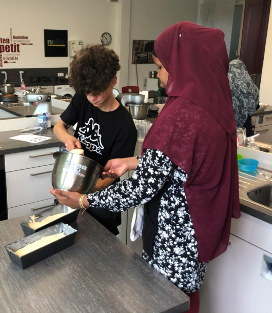 In der letzte Woche beschäftigte sich die 8/9 DGS im Rahmen der KBW mit der Frage, warum in Deutschland Menschen auf der Straße leben. Eine kleine Gruppe von Schülern begab sich deshalb in die Küche, um Kuchen als Spende für die Bahnhofsmission zu backen.