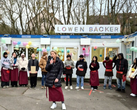Letzten Freitag öffnete unsere Löwen-Mittelschulklasse mit Klassenlehrerin Maike Eder ihren Pausenverkauf mit einer kleinen Einweihungsfeier. Vorausgegangen war die Gründung einer Schülerfirma. Die Schülerinnen und Schüler werden von nun ab jeden Tag in der ersten Pause vom Container aus Backwaren verkaufen. Sollte Ihr Kind bei den „Löwenbäckern“ einkaufen wollen, so müssten Sie Ihrem Kind etwas Geld mitgeben. Je nachdem, wie der Verkauf läuft, wird das Sortiment angepasst und ggf. noch erweitert. Fragen Sie Ihr Kind, was es alles gibt beim „Löwenbäcker“!