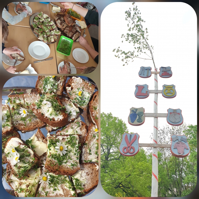 Bei Sonnenschein haben die Schülerinnen und Schüler der Mönchbergschule den Mai gefeiert. Viele Klassen der Grund- und Mittelschule brachten verschiedene Beiträge dar (Lieder, Erklärungen und natürlich die Aufstellung des Maibaums). Zum Abschluss gab es Maienbrote die von den Jüngsten (Eulen, Mäuse, Bären, Luchse und Drachen) vorbereitet worden waren.