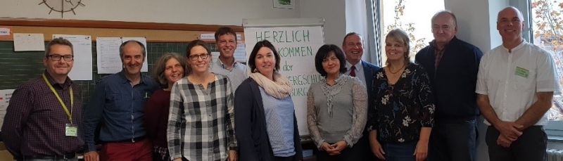Kenner*innen des Stadtteils Frauenlands wissen mit den beiden Abkürzungen etwas anzufangen: am 21.10.2019 besuchte das Matthias-Grünewald-Gymnasium die Mönchbergschule. Beide Bildungseinrichtungen liegen kaum 800 Meter voneinander entfernt, beide Einrichtungen sind „SOR/SMC“-Schulen, beide Einrichtungen weisen explizite Alleinstellungsmerkmale aus: Das MGG ist das einzige musisches Gymnasium in der Stadt Würzburg, die MÖ ist Würzburgs zentrale Schule zur Aufnahme von Kindern und Jugendlichen aus verschiedenen Stadtteilen, die als Sprachanfänger*innen im Migrationsvordergrund stehen, d.h. erst kürzlich aus anderen Ländern nach Deutschland kamen. Gemeinsam beschlossen der Schulleiter des MGG, OStD Dr. Martin Sachse-Weinert, mit fünf anwesenden MGG-Lehrern und der Schulleiter der MÖ, Dr. Alban Schraut mit den Mönchberg-Lehrkräften eine vielfältige gegenseitige Schüler-Lehrer-basierte ideenreiche Kooperation aufzubauen: Diese beginnt mit einer englischsprachigen E-Mail Partnerschaft zwischen zwei Klassen, führt über die Zusammenarbeit der beiden Schulchöre bis zu gemeinsamen Bildungsfrühstücken sowie gegenseitigen Besuchen bei Festen und Feiern. Freuen wir uns auf diese für beide Schulfamilien förderliche Kooperation.