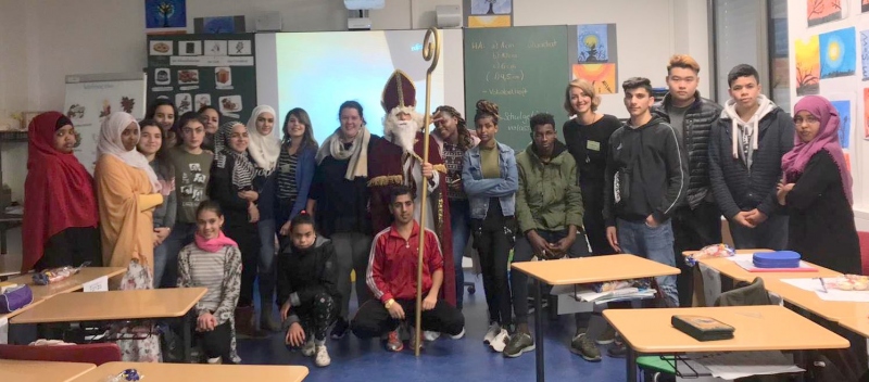 Auch manche Klassen der Mittelschule wurden vom Nikolaus heimgesucht. Die Schüler und Schülerinnen waren schwer beeindruckt, dass der Nikolaus in seinem hohen Alter sich noch auf den Weg vom Nordpol in die Mönchberg-Mittelschule begeben hatte. Sie boten ihm einen Rollstuhl an, um ihn wieder zu seinem Schlitten zurückzubegleiten. Aber zunächst las er ihnen die Leviten, und Knecht Ruprecht (sein weiblicher Assistent) hatte nicht schlecht zu tun. Dann schüttete er seine guten Gaben über den Schülern aus. Manche Schüler gaben dem Nikolaus Tipps für seine Gesundheit mit auf den Weg. Er solle sich doch mit Capoeira fit machen. Der Nikolaus versprach eine wohlwollende Prüfung der Vorschläge und wurde mit donnerndem Applaus entlassen.