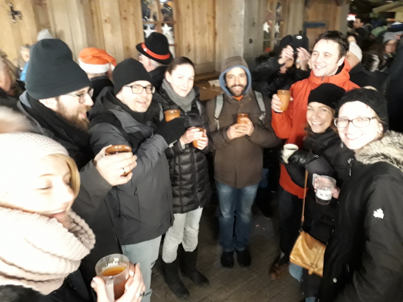 Auf dem Würzburger Weihnachtsmarkt wurde die Abordnung der Lehrerinnen und Lehrer von einer unauffälligen Gestalt mit Bart besucht. Sie fühlten sich zwar nicht kontrolliert, aber die sonore Stimme erinnerte manchen Kollegen an die Predigten eines Nikolauses in der Klasse 8/9DS. Ein weiteres Indiz, dass es sich um den Nikolaus handelte, mag der Sack auf seinem Rücken gewesen sein, sowie eine tief ins Gesicht gezogene Nikolausmütze in Tarnfarbe. Nachdem die Kolleginnen und Kollegen nichts Unrechtes taten, erfolgte auch keine nikolausmäßige Besserungsrede. Die Gestalt entfernte sich nach kurzem Aufenthalt, manche KollegInnen wollen danach ein Klingeln von Rentierschlittenglöckchen vernommen haben.