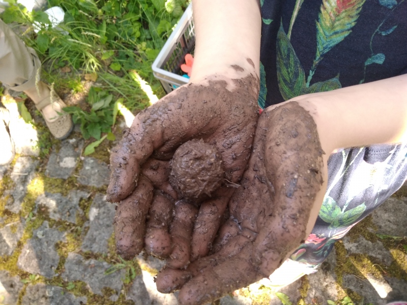 Zum Schluss durften alle noch Saatkugeln herstellen und mitnehmen, auf dass wir insektenfreundliche Wiesen auch zu Hause Pflanzen können.