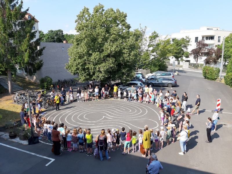 Zu Beginn und zum Abschluss haben wir das Mönchberglied im Labyrinth gesungen.