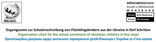 23.03.2022 Jörg Kerber Organization chart for the school enrolment of Ukrainian children in five steps. Організаційна діаграма щодо шкільного зарахування дітей-біженців з України за п'ять кроків.Schuleinschreibung ukrainischer Flüchtlingskinder шкільного зарахування дітей-біженців з України zurück zur vorigen Seite