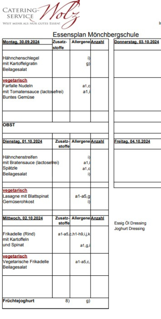 Speiseplan für die KW 40