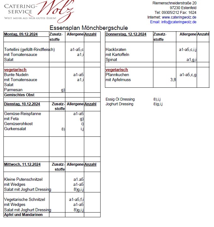 Speiseplan für die KW 50