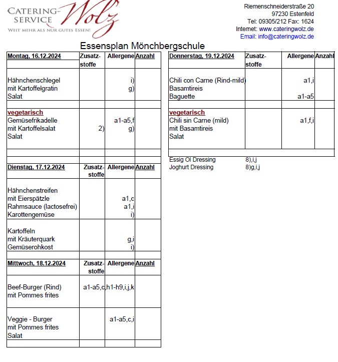 Speiseplan für die KW 51