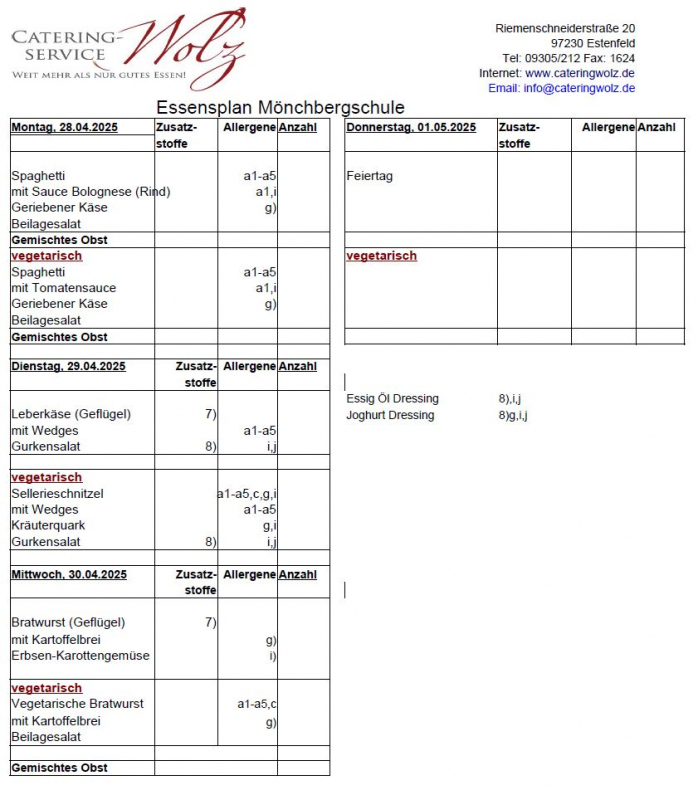 Speiseplan KW 18