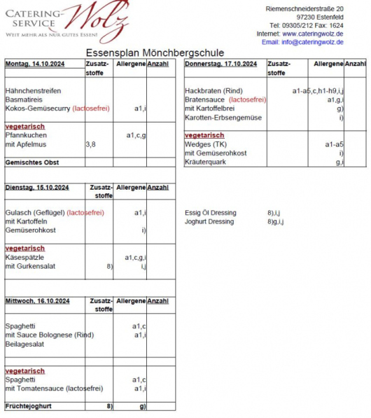 Speiseplan KW 42