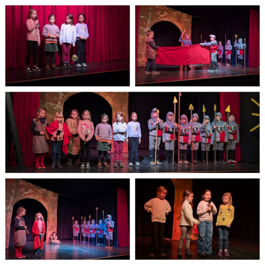 So spielte eine Gruppe unmittelbar nach dem Laternenumzug vor den ersten bis dritten Grundschulklassen, während die zweite Gruppe die Legende für 50 Kindergartenkinder, die beiden vierten Klassen und zwei Mittelschulklassen erzählte.