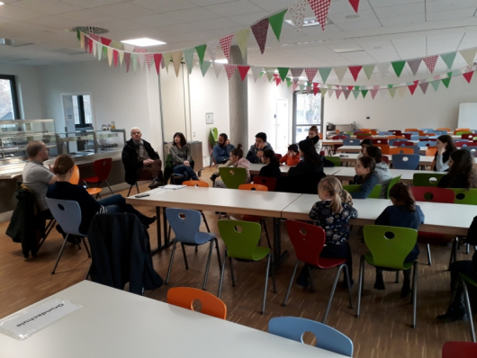 Die Klassensprecher und ihre Stellvertreter von Grund- und Mittelschule hatten heute eine wichtige  Versammlung. Sie trugen ihre Anliegen und Nöte vor.  Zusammen mit dem Vertreter der Stadt, Herrn Wiegand, der Architektin, Frau Hilpert, dem Elternbeiratsvorsitzenden Herrn  Diegelmann, der Elternbeirätin Frau Häusler, dem Sozialarbeiter Herrn Hafsa, seiner Assistentin Frau Kastrati, sowie Herrn Jüttner dachten sie darüber nach, wie die Probleme gelöst werden könnten. Die Schülersprecherin Elena Mihalcea trug ein besonderes Anliegen vor: Es sollte doch bitte Ersatz geschaffen werden für die Schultoiletten, die gerade saniert und daher nicht benutzbar wären. Herr Wiegand und Frau Hilpert versprachen, sich für Abhilfe einzusetzen. Wir danken allen Beteiligten für ihr Mitdenken und für ihre Mitarbeit.