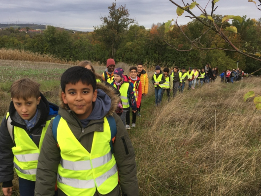 Am Freitag, den 11. Oktober nahmen die Tiger neben vier weiteren Schulen am 50. Grenzgang der Stadt Würzburg entlang der Stadtgrenze zu Randersacker, Gerbrunn und Rottendorf teil. Gestartet wurde am Alandsgrund und auf dem Weg konnten die Schülerinnnen und Schüler auf unterhaltsame und spielerische Art und Weise viel Wissenswertes über Grenzen, ein gutes Nebeneinanderleben und alte Traditionen erfahren. So wurden ein Kind und Frau Reitzenstein beim Setzen das Jubiläumsgrenzsteins "gestaucht" , des weiteren gab es einen Geometerwettbewerb, bei dem die Schüler sich im Senkelziel- und Senkelweitwurf, Maßbandaufrollen, Entfernungen abschätzen und abschreiten sowie Fluchtstab-Weitwerfen messen konnten. Zwischendurch wurden alle mit warmem Tee und Brezen versorgt. Zielpunkt war das Gut Wöllried, wo die Grenzgänger ein leckeres Mittagessen erwartete. Die Spannung, welche Schule in der Gesamtschau aller Spiele und Wettbewerbe die Nase vorn haben würde, war groß, vor allem als am Schluss nur noch die Mönchbergschule und die Goethe-Kepler-Schule um den ersten Platz konkurrierten. Welch ein Jubel, als die Tiger als Sieger verkündet wurden und Freikarten für das Dallenbergbad und zum Minigolfen in Empfang nehmen durften!