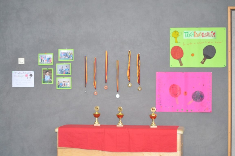 Das große internationale Tischtennisturnier der Grundschule fand am 22.03.2018 statt. Aus den Klassen der ersten und zweiten Jahrgangsstufe (Bären, Mäuse, Füchse und Drachen) nahmen 55 Kinder teil und aus den dritten und vierten Klassen waren 40 Kinder am Start. Es wurde wie die letzten Jahre nach dem Kaiserturnier gespielt, so dass jedes Kind mindestens 3 Spiele spielen konnte. Die Kinder aus der dritten und vierten Klassen bestritten die (End-)Spiele um die Plätze 1-8 ohne Zeitlimit mit 2 Gewinnsätzen.