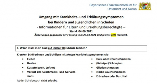 wir hoffen, Sie hatten mit Ihrer Familie erholsame Ferientage und konnten die sommerlichen Temperaturen genießen. Über das Kultusministerium erreicht uns eine aktuelle Information zum Umgang mit Krankheitssymptomen. Wir bitten Sie um Kenntnisnahme und Berücksichtigung. Sie können dieses Schreiben hier abrufen.
