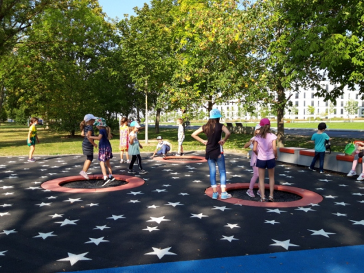 Die Bärenklasse hat heute ihren ersten Wandertag zum Gartenschaugelände am Hubland gemacht. Wir haben die verschiedenen Spielplätze besucht, die Sportgeräte ausprobiert und natürlich die Brotzeit bei herrlichem Sonnenschein und warmen Temperaturen genossen. Wir hatten viel Spaß und haben uns am Ende mit einem Eis abgekühlt.
