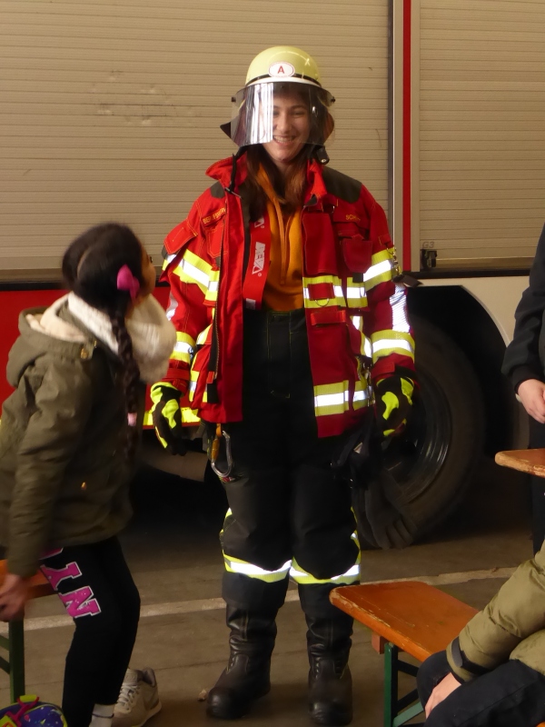 Im Rahmen des Sachunterrichtthemas "Feuer und Feuerbekämpfung" haben die Schüler*innen der Wölfeklasse (3/4 D) die Arbeit und Aufgaben der Feuerwehr "vor Ort" ganz konkret erkundet und erklärt bekommen. Die Klasse war bei der Berufsfeuerwehr Würzburg (Feuerwache und integrierten Leitstelle für Rettungsdienst, Feuerwehr udn Katastrophenschutz) zu Gast. Neben vielen Erklärungen durften wir diverse Ausrüstungen, äußerst vielseitiges Material und verschiedenste Fahrzeuge genauestens anschauen, manchmal auch ausprobieren und - wenn möglich sogar - "anprobieren". Da es die echte Feuerwehrkleidung allerdings nur in Erwachsenengröße gab, stellte sich unsere Praktikantin als "Modell" zur Verfügung und erhielt dafür großen Applaus. Herzlichen Dank!