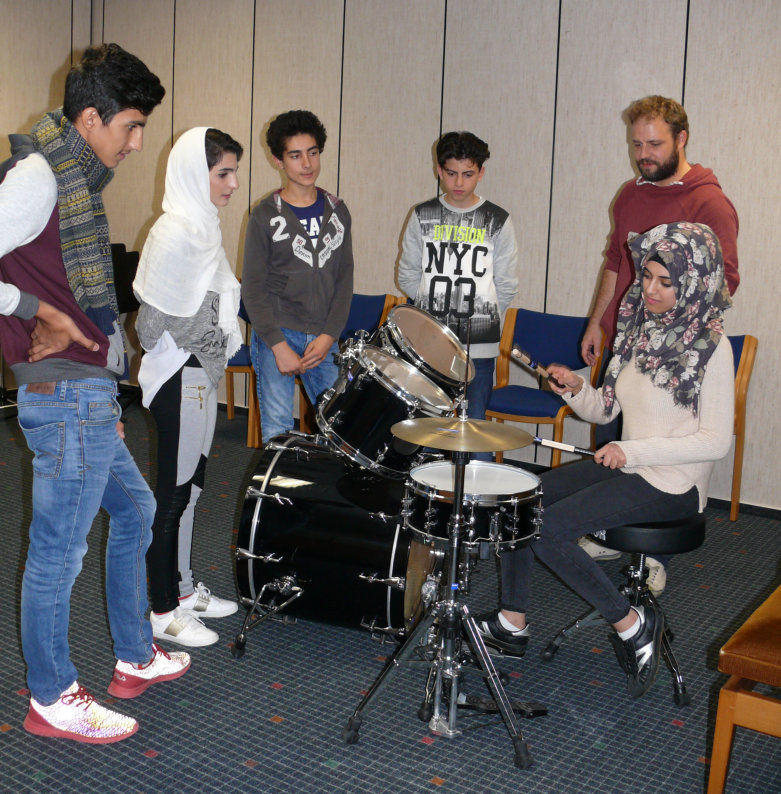 Wir werden dabei von fünf Musikpädagogen von "Willkommen mit Musik" begleitet, die mit viel Engagement die Workshops leiten.