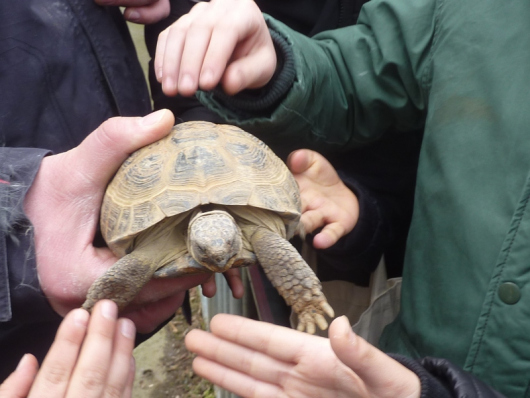 Motiviert erlernten die Sprachanfänger den thematischen Wortschatz zu Tieren und insbesondere auch zu Haustieren im DaZ-Unterricht. Um die Tiere auch "in natura" zu erleben und noch Informationen über sie zu gewinnen, machte sich die Klasse Ü3/4 Ende Februar auf den Weg ins Würzburger Tierheim. Wir hattten Glück und konnten viele verschiedene Haustiere sehen und manche auch streicheln, wie etwa Hunde, Katzen, Schildkröten, Papageien, Hamster, Meerschweinchen, Kanninchen und Chinchillas.