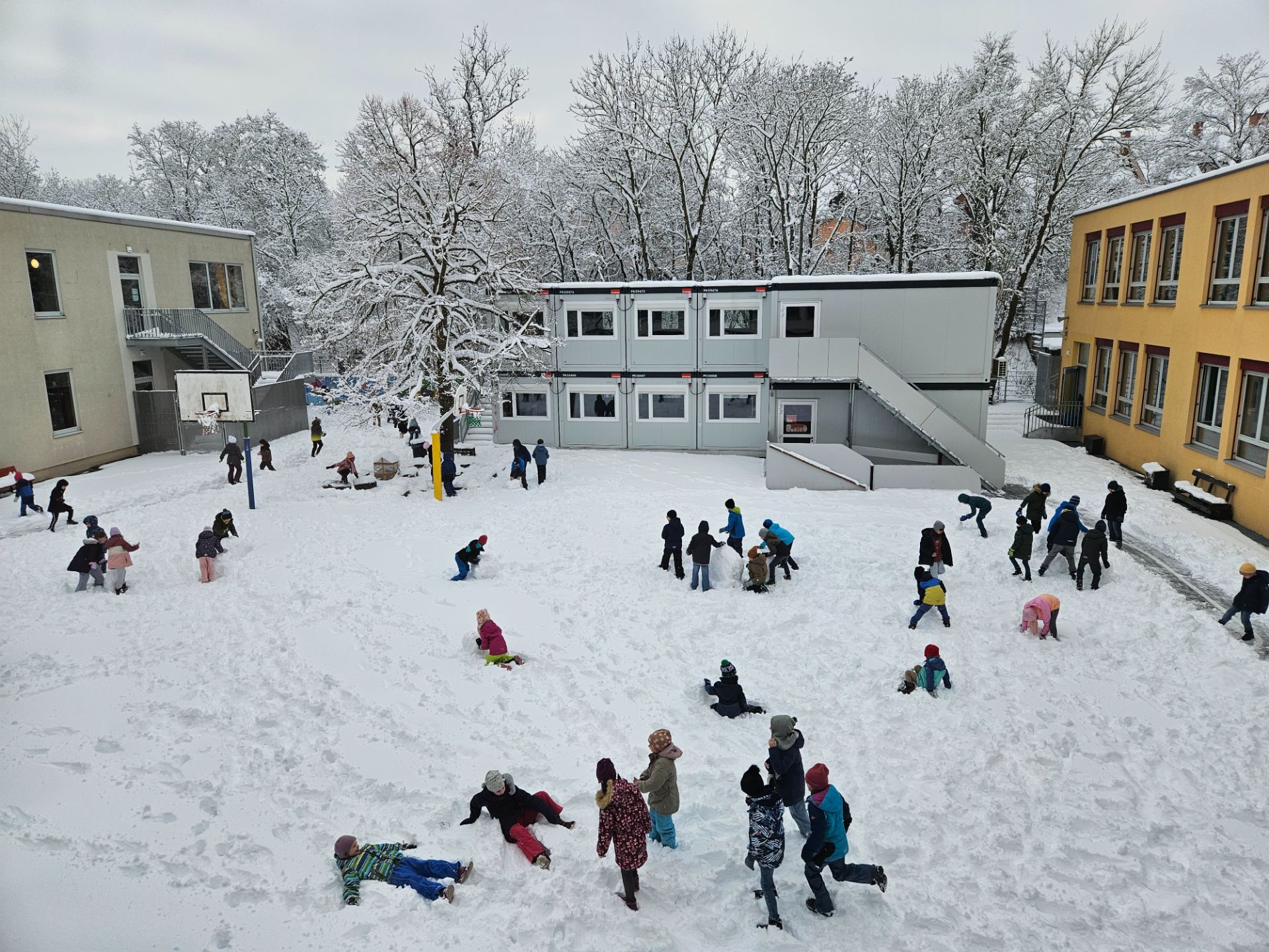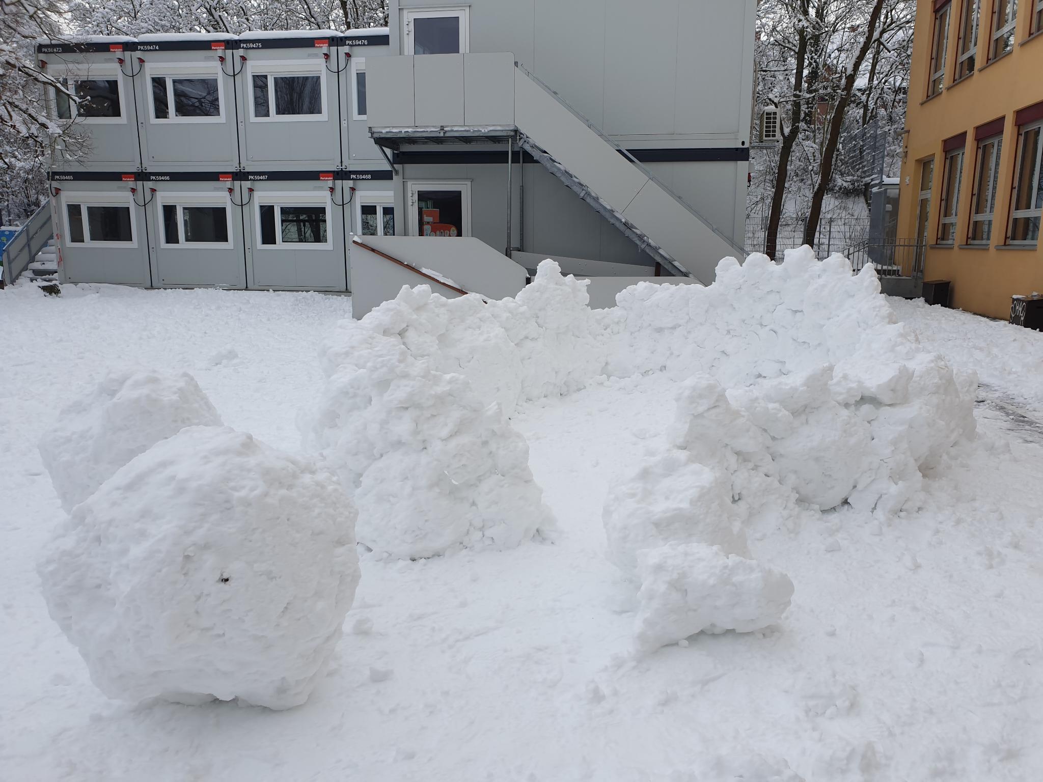 Ende Januar 2026 gab es viel Schnee in Würzburg. Am Montag wurde vom Kultusministerium in ganz Unterfranken der Präsenzunterricht abgesagt. Am Dienstag konnten die Kinder der Mönchbergschule im Pausenhof den wunderbaren Schnee genießen.